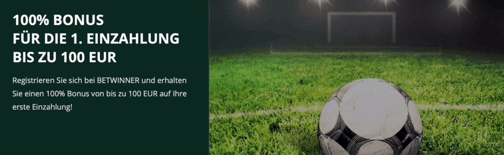 Einen Willkommensbonus hat BetWinner auch im Programm. Auf eure erste Einzahlung bekommt ihr einen 100 Prozent Bonus bis zu 100 Euro. Um diesen Bonus zu bekommen, müsst ihr euch lediglich ein Konto einrichten und eine erste Einzahlung tätigen. Das Bonusguthaben wird euch anschließend automatisch gutgeschrieben.
