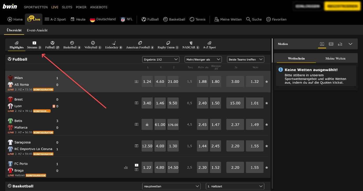 Mein Tipp:Wenn du bei bwin live tippen möchtest und dabei den Livestream sehen willst, musst du dich anmelden. Zudem benötigst du auch Geld auf dem Konto haben. Die Details beleuchten wir im folgenden Abschnitt detailliert.Benötigt man für die bwin Livestreams Wettguthaben?