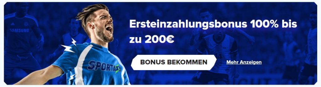 Kunden werden bei Sportaza mit einem 100-%-Eröffnungsbonus belohnt, der mit einer Mindesteinzahlung von 20 Euro verbunden ist und bis zu 200 Euro reichen kann. Zahlungen mit Skrill und NETELLER sind hierbei verboten, woraufhin ein einmaliger Umsatz der Einzahlungssumme ab einer Quote von 1,50 erfolgen muss. Ohne Bonuscode erscheint das Bonusgeld dann auf dem Wettkonto.