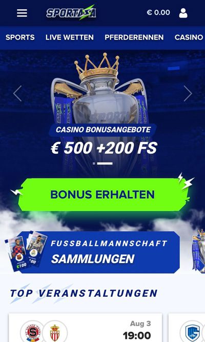 Entsprechend bleibt es auch grob beim gleichen Seitenaufbau, wenn auch wie üblich leicht verschoben und für den Touchscreen optimiert. Wichtig ist, dass Sportaza übersichtlich und leicht zu bedienen bleibt, während laut Sportaza Erfahrungen sämtliche Funktionen auf jedem Endgerät bereitstehen.