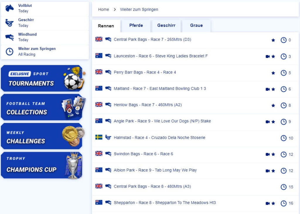 Hinzu kommen einige Spezialwetten aus Gesellschaft und Politik, wobei es anderswo sicherlich erheblich mehr sein können, aber gegenüber deutschen Anbietern bleibt in jedem Fall ein Mehrwert. Der wird dann noch ausgebaut mit etwa zehn virtuellen Sportarten wie Fußball, Tennis und Basketball, aber auch Pferde- und Windhundrennen.