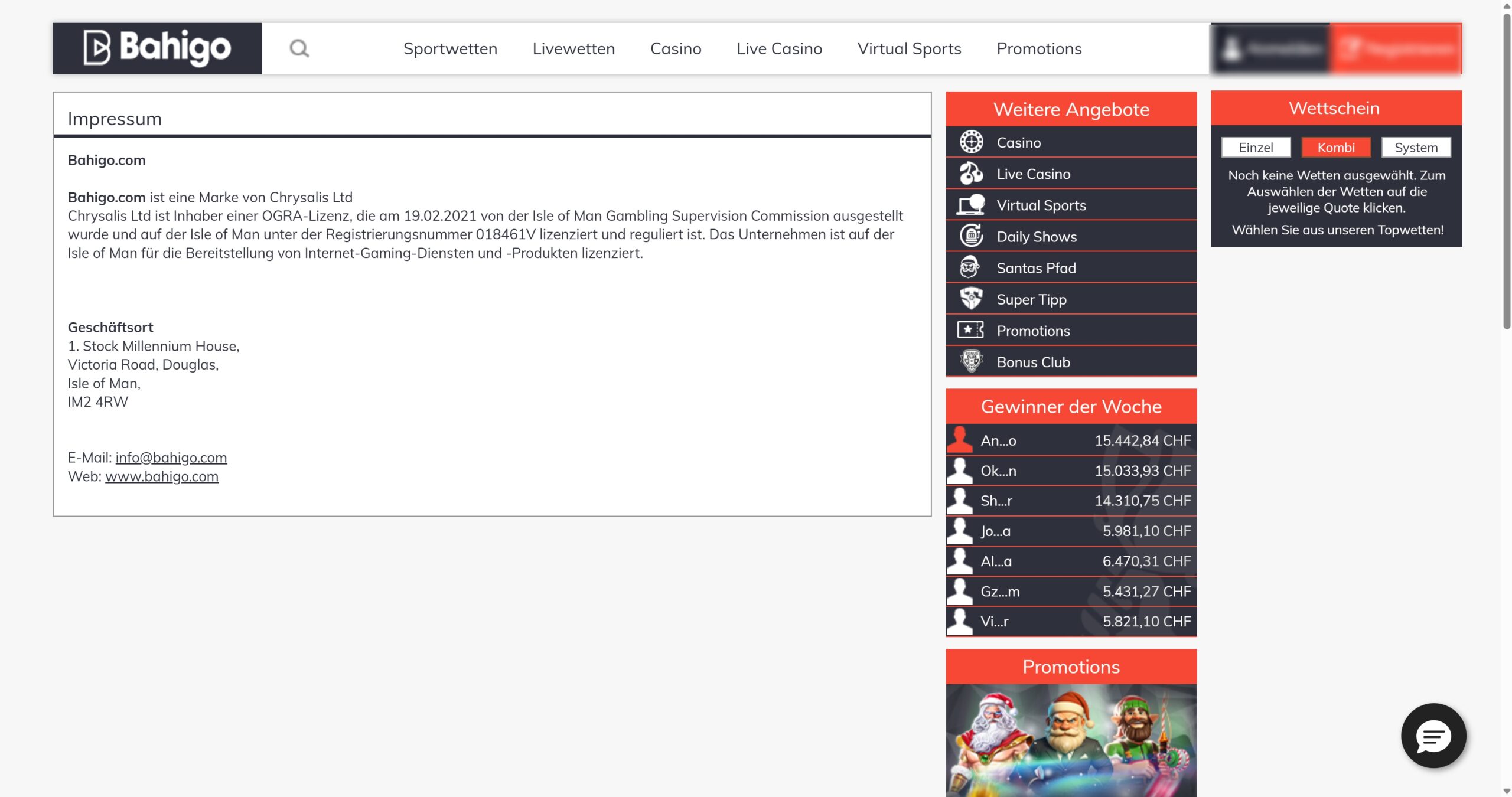 Bahigo ist ein hervorragend aufgestellter Wettanbieter. Hinter dem Wettangebot steht das Unternehmen Chrysalis Ltd., das mit einer Lizenz der Glücksspielbehörde der Isle of Man (OGRA-Lizenz) ausgestattet ist. Die Website hat eine sichere SSL-Verschlüsselung und funktioniert einwandfrei.