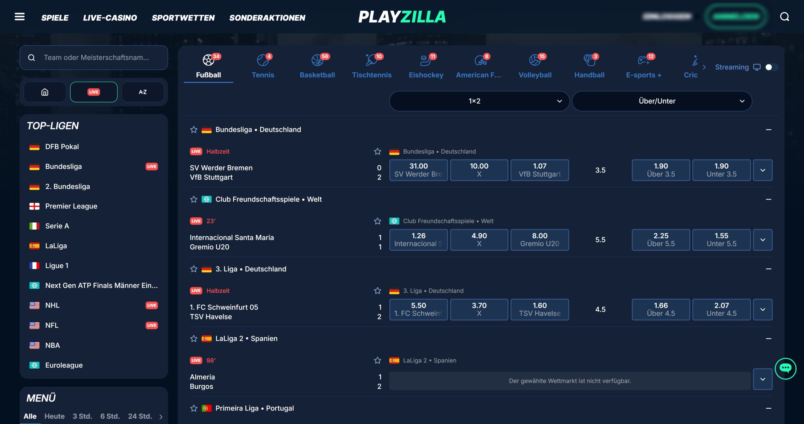 Umfangreiche Livewetten-Programme