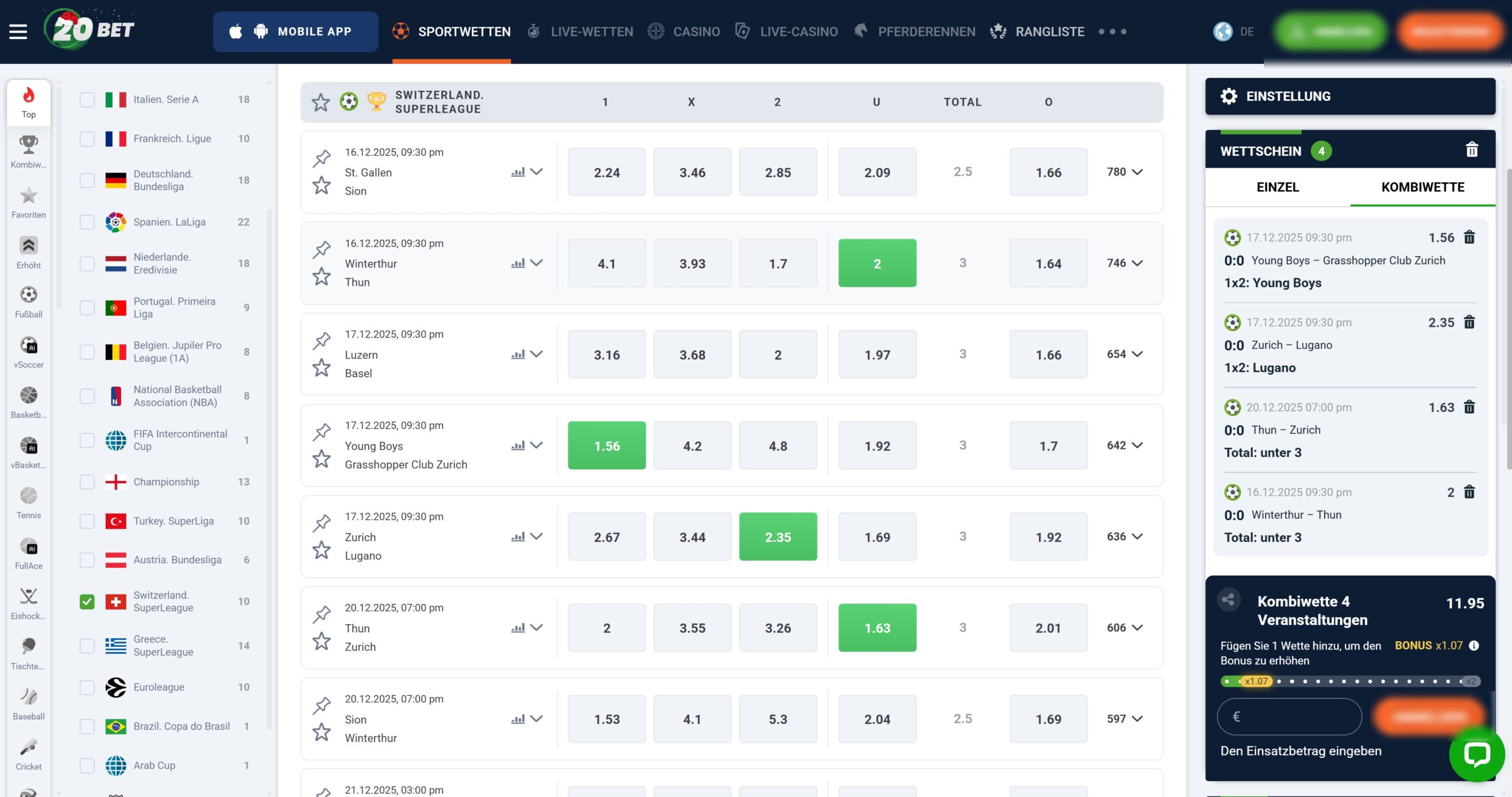Wenn du bei den lizenzierten Wettanbietern Sportwetten in der Schweiz platzierst, kommst du selten in den Genuss von Sonderaktionen mit wertvollen Vorteilen, etwa einem Quotenboost oder einem Kombiboost.