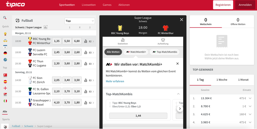 In meinen Tipico Schweiz Erfahrungen schauen wir uns deshalb genau an, in welchen Bereichen Tipico weiterhin zu den starken Anbietern zählt, wo Tipper Nachteile hätten und wie die besten Tipico Alternativen für die Schweiz ausschauen.
