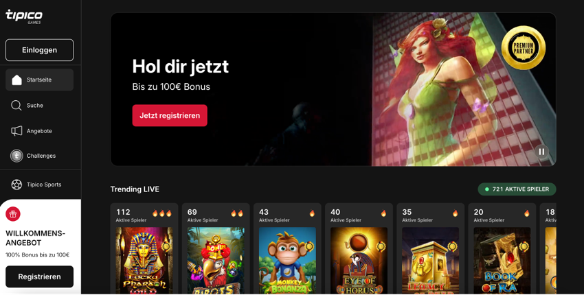 Tipico setzt weiterhin auf ein klassisches, aber solides Willkommensangebot: 100 % Einzahlungsbonus bis zu 100 €. Das Modell ist weniger verspielt als bei vielen Alternativen, dafür aber klar strukturiert und ohne versteckte Stolperfallen – ein Vorteil für Spieler, die Wert auf transparente Bedingungen legen.